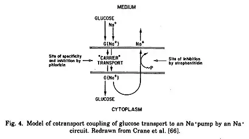 3. ^ a b Robert K. Crane, D. Miller and I. Bihler. "The restrictions on possible mechanisms of intestinal transport of sugars". In: Membrane Transport and Metabolism. Proceedings of a Symposium held in Prague, August 22–27, 1960. Edited by A. Kleinzeller and A. Kotyk. Czech Academy of Sciences, Prague, 1961, pp. 439–449. Model of cotransport on page 448.