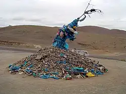 Ceremonial cairn of rocks, an ovoo, from Mongolia