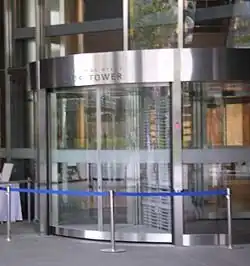 While on a tour of Mori Tower on the morning of 26 March 2004, six-year-old Ryo Mizokawa was killed in a revolving door at the building's second-floor main entrance. Mizokawa's head was crushed between the door rotating from his left and the outer frame; he died two hours after reaching the hospital.[12] The door's motion safety sensor was originally set to detect anything standing 80 centimeters (31 in) tall. This setting was changed to 135 centimeters (53 in), however, after the door began stopping unnecessarily when detecting a newly installed safety barrier nearby. After the incident, it was revealed that 32 people had previously sustained injuries caused by revolving doors at Roppongi Hills since the complex opened less than a year earlier.[13] In September of the same year, in an out-of-court settlement, the Mizokawa family received a compensation payment of approximately 70 million yen from the building's operator, Mori Building Company.[14][15] This sum was approximately equivalent to the cost of two doors of the type that caused the fatality.[16]