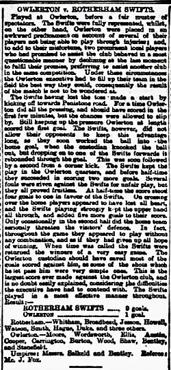 25. ^ "Rotherham Town v Rotherham Swifts". Sheffield Independent: 7. 18 November 1889.