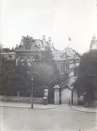 The new wing was completed in 1896 and included new quarters for the princely family, such as a library, reception rooms, a dining room, two winter gardens and a covered porte-cochère.[3] A state-of-the-art electric elevator from the Schindler company was also installed, connecting the ground floor with the first floor. On the first floor were the apartments of Prince Ferdinand, Princess Maria Luisa as well as from the crown prince, the future king Boris III (1894–1943); on the second floor those of prince Kiril (1895–1945) and Princesses Eudoxia (1898–1985) and Nadezhda (1899–1958).[3]