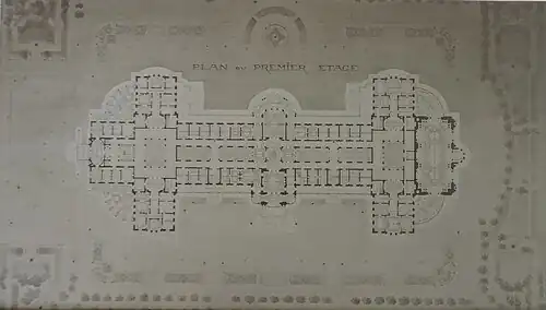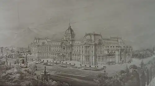 From 1880 to 1882, the Austrian architect Viktor Rumpelmayer directed the reconstruction of the old konak, which was almost completely demolished, although the foundations were used to erect the new palace, which was also enlarged with an eastern wing for receptions.[3] Likewise, all the façades were redone following the sumptuous and cosmopolitan Second Empire style with chateauesque connotations. The idea was to give the new princely residence a cosmopolitan air that would symbolize Sofia's transformation from an Ottoman provincial city to the capital of a newly independent state. In the execution of the project, Rumpelmayer was supported by the Austro-Hungarian architects Friedrich Grünanger, Antonín Kolář (also known as Adolf Václav Kolář), Jakob Heinrich Mayer and Leers.[1][3]