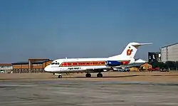On 1 August 1978, the airline inaugurated its services with the F28 on a flight from Manzini to Johannesburg via Durban, whilst the airlines' Viscount was on standby at Matsapha Airport.[4][5] Services to Lusaka, Mauritius and Blantyre were expected to be added to the fledgling airline's route network.[3] The airline made headlines when on 25 November 1981 a group of 44[6] mercenaries led by Mike Hoare boarded a scheduled Royal Swazi National Airways flight in Manzini to Mahé in the Seychelles in an attempt to overthrow Seychellois President France-Albert René. The mercenaries disguised themselves as Ancient Order of Froth Blowers rugby players and fans, but were exposed as they passed through customs when an alert official discovered a dismantled AK-47 in one of the mercenaries' luggage. The Royal Swazi National Airways F28 was damaged in the ensuing firefight between Seychellois officials and the mercenaries at Seychelles International Airport. After the incident, the airline ceased flights to the Seychelles.[4][7][8][9]