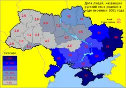 - ^ Juliane Besters-Dilger (2009). Language Policy and Language Situation in Ukraine: Analysis and Recommendations. Peter Lang. pp. 7–8. ISBN 978-3-631-58389-0.