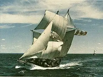 STV Pathfinder is a traditionally rigged brigantine operated by Brigs Youth Sail Training (formally Toronto Brigantine Inc.), a sail training organization based in Hamilton, Ontario, Canada. Pathfinder, along with her sister ship TS Playfair, operates a youth sail training program during the summer holidays. This program is one of the very few sail training programs where all of the crew except for the captain are teens (13–19 years old).[1]