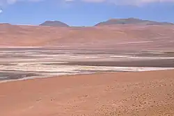 Salar de Quisquiro, also known as Salar de Loyoques, is a salt pan in northern Chile and covers an area of around 80 km2 (31 sq mi).[1] The average surface elevation of its drainage basin is 4,430 m (14,530 ft), being the summit of Cerro Purifican at 5,285 m (17,339 ft), the highest point of this basin.[1]
