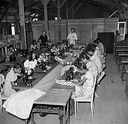 Production focused on company clothing for large companies like Shell (a major employer on Curaçao) and uniforms for police and customs officials[1] and the initial production capacity was 700 overalls, 300 trousers and 400 shirts, with a 45-hour work week. Work was organised by the bundle-progress specialisation system, which the women favoured because (unlike Dutch workers) they preferred not to rotate work.