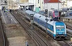 - In west–east direction: Nuremberg–Schwandorf railway line and Schwandorf–Cham–Furth im Wald railway line, continuing to Plzeň and Prague.