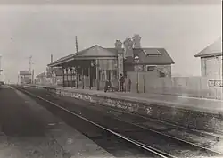 The earlier station buildings, constructed by the North Eastern Railway, seen around the turn of the twentieth century.