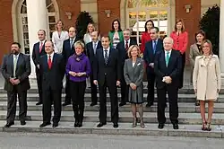 The Council of Ministers was structured into the offices for the prime minister, the two deputy prime ministers, 17 ministries and the post of the spokesperson of the Government.[19][20][21] From April 2009, the Council would include a third deputy prime minister.[22][23] The number of ministries was reduced to 15 after the ministries of Housing and Equality were merged into the Development and Health departments in October 2010.[24] From July 2011, the Council would include only two deputy prime ministers.[25]