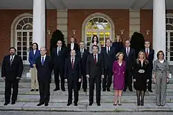 The cabinet comprised members of the PSOE (including its sister party, the Socialists' Party of Catalonia, PSC) and a number of independents.[3][4] It was automatically dismissed on 21 November 2011 as a consequence of the 2011 general election, but remained in acting capacity until the next government was sworn in.[5][6]