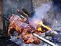 Rotisserie Печење Pečenje A whole pig or lamb roasted on a skewer over a fire.
