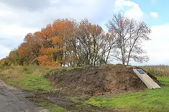 The Serpent's Wall (Ukrainian: Змієві вали, romanizedZmiievi valy, lit.'Winged dragon's walls') is an ancient system of earthworks (valla) located in the middle Dnieper Ukraine (Naddniprianshchyna)[2] that stretch across primarily Kyiv Oblast, Ukraine. They seem to be similar in purpose and character to Trajan's Wall situated to the southwest in Bessarabia. The remaining ancient walls have a total length of 1,000 km[1] and constitute less than 20% of the original wall system.[2]
