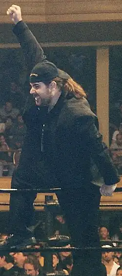 ![]() Lou D'Angeli performing as "Lou E. Dangerously" in Extreme Championship Wrestling in August 2000 | |