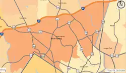 A map marking the boundaries of Silver Spring (in dark orange) as of 2010