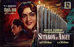 Sitaron Se Aagey (transl. Ahead of the Stars) is a 1958 Hindi Black-and-white family film written and directed by Satyen Bose. The film starred Ashok Kumar and Vyjayanthimala, with Johnny Walker, Rajasulochana, Shammi, Jagdish Sethi, Manmohan Krishna and Leela Mishra in supporting roles. The film was produced by V. L. Narasu. The film's score was composed by S. D. Burman with lyrics provided by Majrooh Sultanpuri. Editing was done by Bimal Roy and it was filmed by K. H. Kapadia.