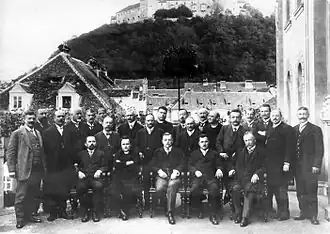 Representatives of the Slovene People's Party in the Provincial Diet of Carniola shortly before World War I. The party's president Ivan Šušteršič sits in the middle.