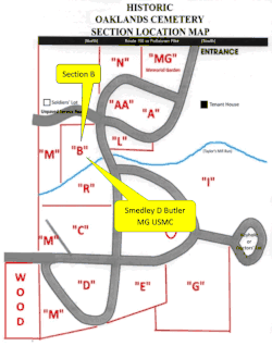 86. ^ "Major General Smedley D. Butler, USMC". Oaklands Cemetery. 2008. Retrieved March 13, 2010.