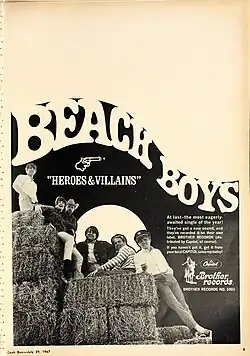 "Heroes and Villains" marked Wilson's first collaboration with Parks. Wilson envisioned the track as a three‐minute musical comedy intended to surpass "Good Vibrations"[170] and produced several versions—some lasting six to eight minutes.[171] He selected the title and linked the melody to the Old West, which reminded Parks of Marty Robbins' "El Paso" (1959). Parks promptly devised the opening line: "I've been in this town so long that back in the city I've been taken for lost and gone and unknown for a long, long time."[172] This collaboration spurred additional Old West–themed songs, including "Barnyard" and "I'm in Great Shape".[173] On November 4, 1966, Wilson recorded a piano demonstration of "Heroes and Villains" incorporating sections of "I'm in Great Shape" and "Barnyard", although the December note listed "I'm in Great Shape" as a separate track.[174] Vosse recalled that "Barnyard" had evolved from an impromptu piano reinterpretation of "You Are My Sunshine" that sparked Wilson's concept for a rustic barnyard aesthetic.[82] Wilson recorded a short medley, sometimes called "My Only Sunshine", that bridged "The Old Master Painter" with "You Are My Sunshine",[175] with Dennis Wilson singing lead on the latter.[132][nb 15] In 1978, Wilson told Preiss about an uncompleted "Barnyard Suite" of four brief pieces.[97]