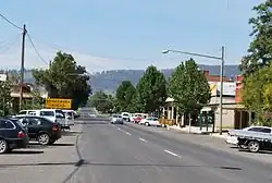 Looking east along the Snowy Mountains Highway (as Tumut Street), in Adelong.