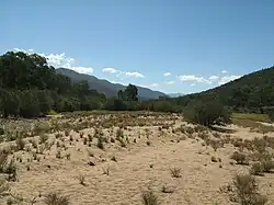 The bushfires of 2002–03, added to this problem as large amounts of sediment and organic matter were deposited in the river via tributary inflows. This input of sediment lead to the substrate becoming finer.[13] This pattern of increased silt in the pools of rivers and streams has been observed across the Snowy Mountains following the bushfires. These bushfires are likely to have a long lasting influence on these waterways.