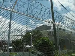 South Camp Prison, also known as the Gun Court prison, opened in 1974 as a combined court and prison to combat the increase in violent crimes involving firearms. A single resident magistrate can issue prison sentences to those convicted of illegal possession of firearms or ammunition.[1] It has accommodated over 330 inmates on occasions.[2]