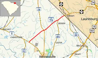South Carolina Highway 383 (SC 383) was a state highway that was established by 1937 as new primary routing from SC 9 near Bennettsville to SC 79 near Boykin. It was renumbered as part of SC 79 by 1970.[5]