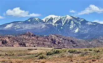 South Mountain is an 11,798-foot (3,596 m) peak in San Juan County, Utah in the United States, about 5 miles (8.0 km) north of La Sal, Utah. It is part of the La Sal Mountains.[2] Precipitation runoff from this mountain drains into tributaries of the Colorado River. The nearest town is Moab, 20 mi (32 km) to the northwest, and the nearest higher neighbor is Mount Tukuhnikivatz, 2.64 mi (4.25 km) to the north.