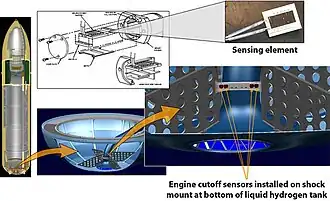 The locations of the liquid oxygen sensors allow the maximum amount of oxidizer to be consumed in the engines, while allowing sufficient time to shut down the engines before the oxidizer pumps cavitate (run dry). In addition, 1,100 lb (500 kg) of liquid hydrogen are loaded over and above that required by the 6:1 oxidizer–fuel engine mixture ratio. This assures that cutoff from the depletion sensors is fuel-rich; oxidizer-rich engine shutdowns can cause burning and severe erosion of engine components, potentially leading to loss of the vehicle and crew.