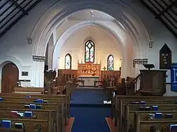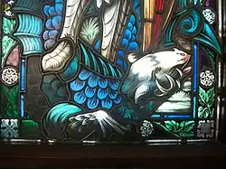 The church presented different types of the architecture typical of Gothic revival: the double pointed arch on the windows along the nave and sanctuary and baptistery (most of them with colourful stained glass and most of them dating from the first half of the 20th century) featuring figures and scenes from the New Testament[11] Two of the stained glass windows (dating from 1992) were a fine blend of contemporary art and Christian imagery (the New Heaven window and the New Earth window. One exception to the New Testament thematic is "The Galahad window" based on Alfred, Lord Tennyson's version of the Arthurian legend and the quest for the Holy Grail (Le Morte d'Arthur) - in the Gothic style.