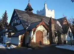 Anglican ministry in the area began in 1909 with travelling missionaries. In 1914, after having been organized as a formal mission with permanent regular worship, a log church was constructed. It was consecrated by the first Bishop of Edmonton on August 2 of that same year.[1] The Women’s Auxiliary of the Missionary Society of Church of England, along with two main donors, provided the bulk of the finances needed. A wooden tower was added in 1915 to provide living quarters for the rector.[2] The church of St. Mary and St. George was designed by Mr. A.M. Calderon of Edmonton and built of local materials in 1928. To complete the church the Edith Cavell Memorial Tower was added in 1932.[3] In 2020 one of its former rectors became bishop of the Anglican Diocese of the Southeast, in Mexico, bishop Julio César Martín-Trejo.[4]