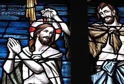 On January 13, 1965, at approximately 6:50 pm, smoke was discovered coming from the church building. An incandescent light had ignited some painting materials in the church. Soon flames engulfed the roof. The fire appeared to be under control by 8:45 pm. However, increasing winds spread the fire to the steeple, and at 10:00 pm the structure fell directly in front of the church, plunging 18 feet (5.5 m) into the courtyard where it remains as a memorial of the event. Rather than relocate to the suburbs where most of the church members lived, the congregation decided to rebuild the historic structure. A survey of the damage showed that the chancel and all but one ground floor stained glass windows were intact. Also, the chancel furniture, altar hangings, and "wine glass" pulpit were saved. The destroyed gallery stained glass windows were replaced by Franz Mayer & Co. of Munich, Germany, and executed by the studios of George L. Payne of Paterson, New Jersey.[15] The destroyed windows in the front of the church were replaced by the Hunt Stained Glass Studios of Pittsburgh, Pennsylvania, who had installed the originals. The first service in the restored sanctuary was on June 12, 1966.