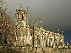 St John the Baptist's Church is a redundant Anglican parish church in Church Street, Bollington, Cheshire, England. It is recorded in the National Heritage List for England as a designated Grade II listed building.[1] It was a Commissioners' church, having received a grant towards its construction from the Church Building Commission.[2] The parish church is now St Oswald's Church, Bollington.