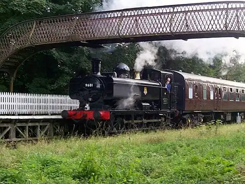 Pannier 9681 rushes through St Mary's Halt towards Norchard.