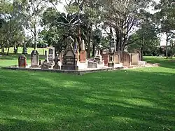 The cemetery contains one Commonwealth war grave, of an Australian Army officer, Capt. Richard Gordon Dibbs.[4] The Park contains the headstones of thirteen members of four generations of the Dibbs family, the oldest being Sophia Elizabeth Dibbs, born in Sydney in 1809, and mother of George Dibbs (grandson of George Dibbs, below) of World War II.[5]