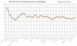57. ^ a b c d e f g h i j k l m n o p q r s t u v w x y z aa "Star Trek: The Next Generation Nielsen Ratings – Seasons 1–2". TrekNation. Archived from the original on October 5, 2000. Retrieved March 31, 2013.