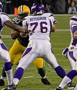 At the time, NFL rules required that if a team signed a player with the transition tag to an offer sheet, the original team had to either match the offer sheet exactly or relinquish their rights to that player. While the tag was not triggered during his time with the Vikings—he was released by the Vikings in March 2012—the Seahawks had recently given tackle Walter Jones a contract richer than the one offered to Hutchinson. Thus, the team would have triggered the "poison pill" clause immediately and would have been forced, by NFL rules, to immediately guarantee Hutchinson's entire salary. Since doing so would have destroyed their salary cap, they could not match the offer. Moreover, since they only used their transition tag, rather than naming Hutchinson a franchise player, they received no compensation from Minnesota for their loss. Seattle retaliated, though, by signing Minnesota wide receiver Nate Burleson to an offer sheet containing a similar ploy. Because of this controversy, the NFL banned the use of "poison pills".[5] Hutchinson played 59 straight games while with the Vikings, not missing a start.