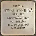 JOSEFA LOHEITOVÁ BORN 1882 DEPORTED 1942 TO THERESIENSTADT 1943 TO AUSCHWITZ MURDERED |