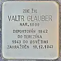 VALTR GLAUBER BORN 1899 DEPORTED 1942 TO THERESIENSTADT 1943 TO AUSCHWITZ MURDERED 18 December 1943 |