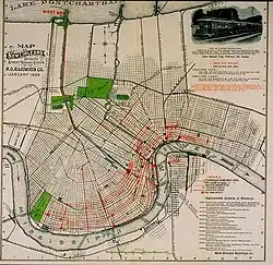 Map of New Orleans Showing Street Railway System of the New Orleans Railways Company, January 1904.