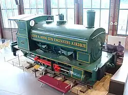 11 Gibb and Hogg, Airdrie 0-4-0ST 1898 16 Dark Green Worked for Fife Coal Company and later N.C.B. Fife area. Later displayed in Pittencrief Park, Dunfermline. Only surviving locomotive from this builder. On display in exhibition hall.