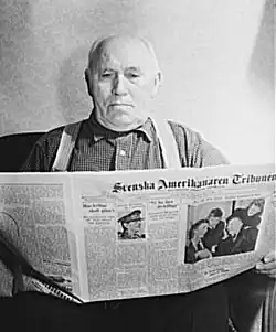A third newspaper, Svenska Nyheter, was published from 1901 to 1906[8] and then merged with Svenska Tribunen under the title Svenska Tribunen-Nyheter from 1906 to 1936.[9] Its editors were C. F. Erikson from 1905 to 1913 and A. Tofft after 1913.[5] It comprised 16 pages in seven columns and had distribution of 70,000 copies (1915).[10] The newspaper's politics leaned towards the Republican Party.[11][12]