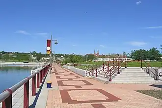 Syracuse's main water source is Skaneateles Lake, one of the country's cleanest lakes,[20] located 15 mi (24 km) southwest of the city. Water from nearby Onondaga Lake is not potable due to industrial dumping that spanned many decades, leaving the lake heavily polluted.[21] Incoming water is left unfiltered,[22] and chlorine is added to prevent bacterial growth. Most of the environmental work to achieve lake cleanup was scheduled to be completed by 2016; however Honeywell, the company tasked with the cleanup, announced the project's completion in late 2017.[23][24] For periods of drought, there is also a backup line which uses water from Lake Ontario.[25]