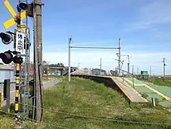 The station was destroyed on March 11, 2011 due to damage associated with the 2011 Tōhoku earthquake and tsunami, and services were replaced by provisional bus services.[1] The station reopened on May 30, 2015 on a higher ground where the former community around the station would be reconstructed.[2][3] Due to the relocation, the distance from Aoba-Dōri was changed from 32.4 kilometers to 32.2 kilometers.[4]