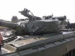 A prototype version of Oplot tailored for evaluation by the Turkish Army (prototype designation, KERN2-120).[25] Mounts a 120 mm main gun which fires both 120 mm NATO rounds (like the M829 DU series) and a special 120 mm version of the AT-11 Sniper ATGM. Most significantly, the Yatagan features a completely redesigned "Cassette style" bustle mounted autoloader,[26] similar to the ones used on Leclerc and K2 Black Panther, replacing the Soviet-era carousel autoloader. This redesign allows all ammunition in the ready-rack to be separated from the crew and equipped with blowout panels, features considered standard for NATO MBTs. It also has automated gear shifting in place of a mechanical gear selector, driver's T-bar control replacing tiller bars, air conditioning, and projectile muzzle velocity sensor, and differences in the fire control system, communications, etc.