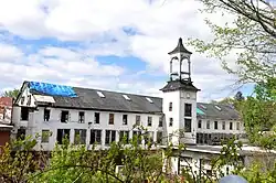 The stretch of Main Street on which the mill village is centered was historically a major through road, which was first bypassed by the present alignment of Connecticut Route 83, and then truncated by the major construction work in the 1980s widening Interstate 84. The district's principal features extend along Main Street from CT 83 to where the road crosses the Tankerhoosen River (on a late 19th-century lenticular truss bridge built by the Berlin Iron Bridge Company). The mill complex is located between Main Street and the river, with the principally residential surviving elements of the Talcott's constructions on Main Street and Elm Hill Road. The district includes 32 historically significant buildings, as well as the dams, mill sites, and mill ponds associated with the Warburton, Dobson, and Talcott mills.[2]