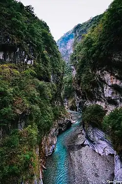The gorge itself was carved into the marble by the erosive power of the Liwu River.[8]