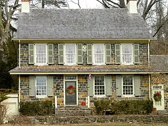 Built in 1768, this historic structure has three sections. The main section is 2+12 stories and constructed of fieldstone. Four bays wide and has a gable roof, it has a 1+12-story stone kitchen wing and an attached stone shed.[2]