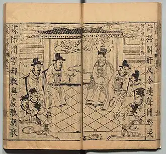 Emperor Ling often said, "Regular Attendant Zhang (Rang) is my father, Regular Attendant Zhao (Zhong) is my mother."[14][4] As the eunuchs were highly trusted and favoured by Emperor Ling, they behaved lawlessly and abused their power. They even built lavish mansions for themselves in the same design as the imperial palace. When Emperor Ling once visited Yong'anhou Platform (永安侯臺), a high viewing platform, the eunuchs were worried that he would see their mansions and become suspicious. Thus, they told him, "Your Majesty shouldn't put yourself on higher ground. If you do so, the people will scatter." The emperor believed them and stopped visiting high towers and viewing platforms.[15]