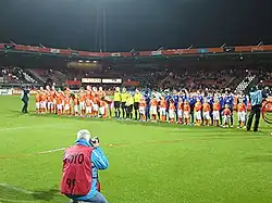 A friendly match between Thailand and the Netherlands before the 2015 FIFA Women's World Cup